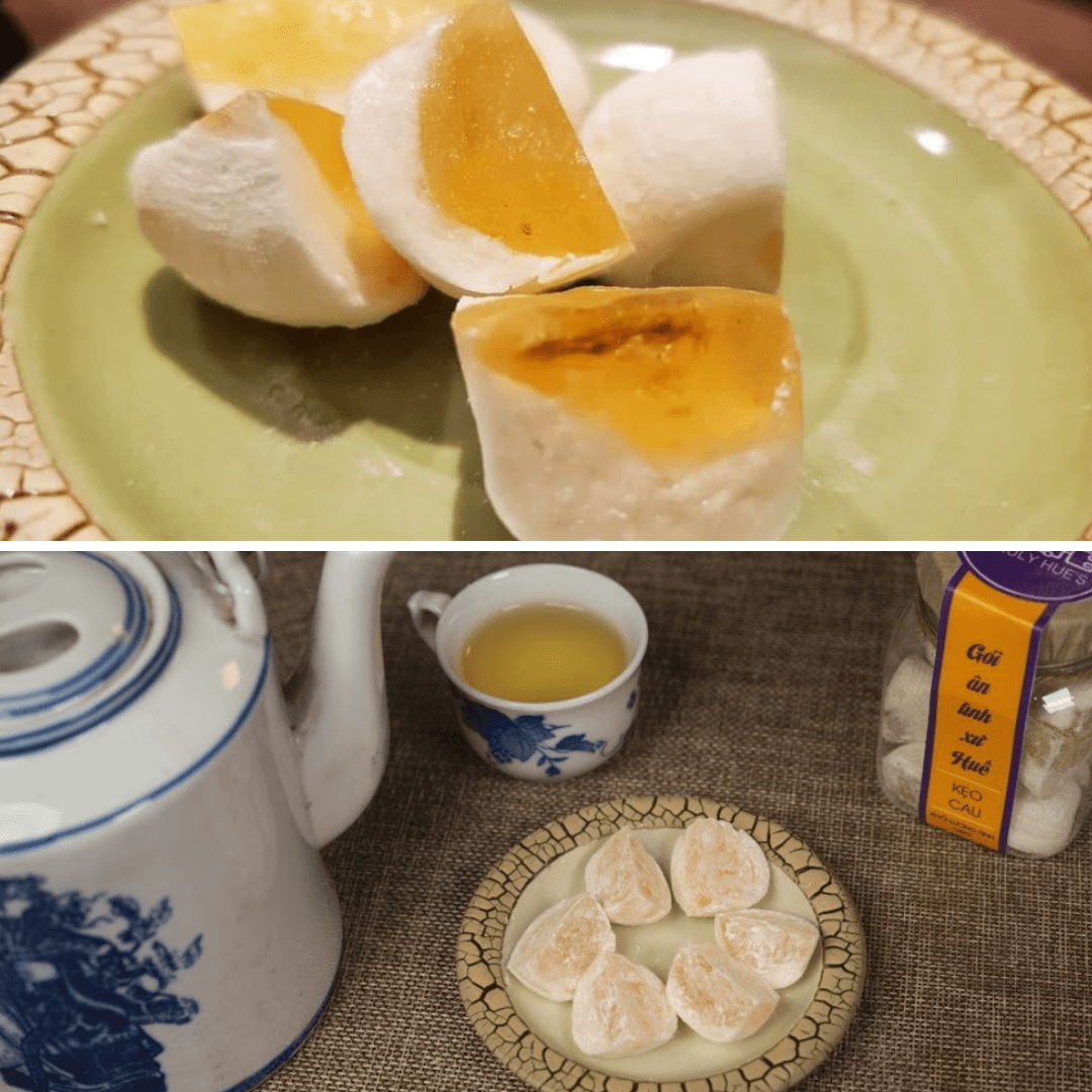 Kẹo cau là một phần không thể thiếu trong khoảnh khắc bình yên của mỗi người khi đến Huế. Mỗi viên kẹo đều mang một hương vị ngọt ngào,tượng trưng cho sự giản dị,mộc mạc của vùng đất này. Khi thưởng thức,bạn không chỉ cảm nhận được sự hòa quyện tinh tế của các nguyên liệu quen thuộc,mà còn như lắng nghe nhịp sống nhẹ nhàng của những con phố Huế,đầy sự trân trọng với từng khoảnh khắc giản đơn.