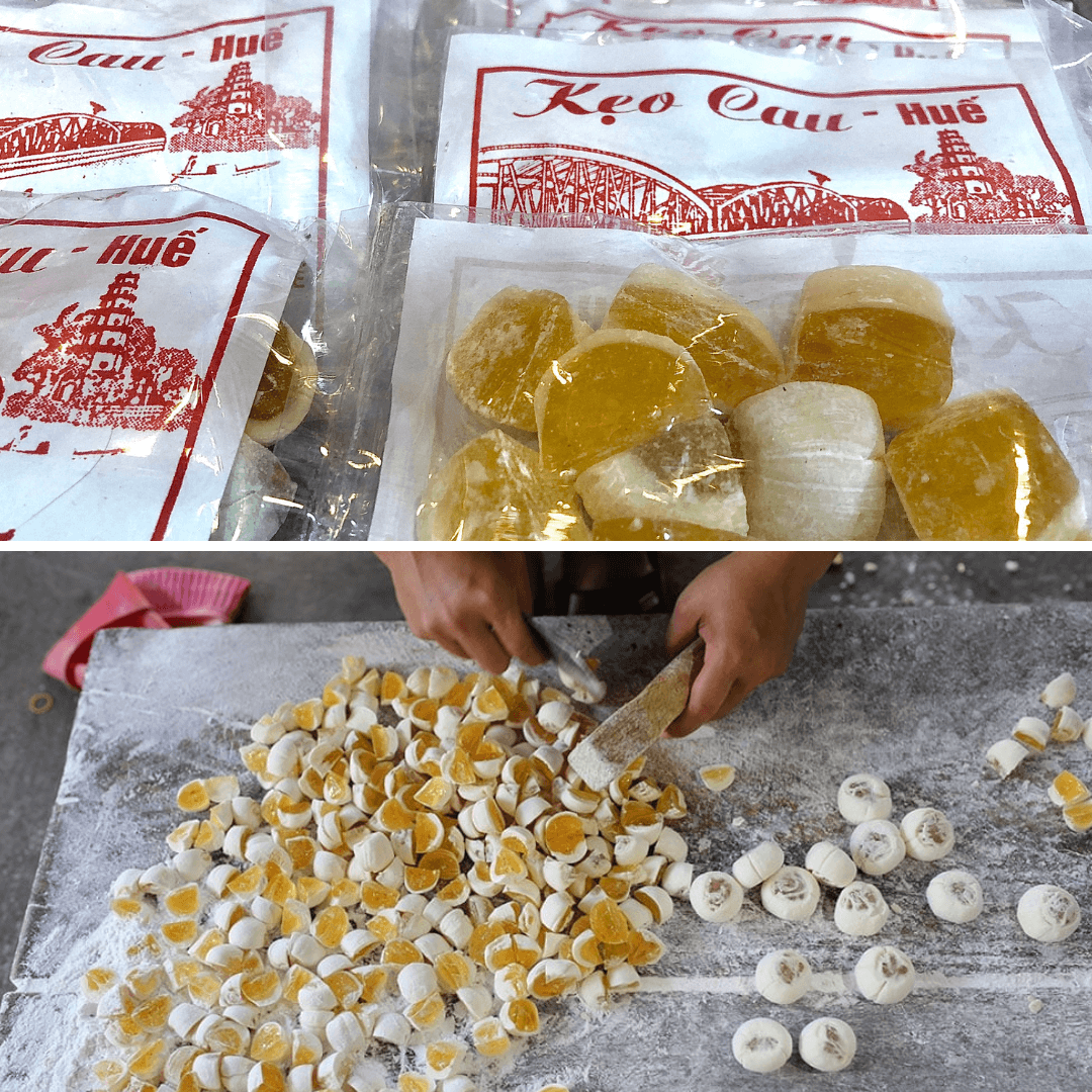 Kẹo cau là món ăn vặt truyền thống nổi tiếng tại Huế,mang đậm nét văn hóa ẩm thực dân gian. Đây là món ăn quen thuộc của nhiều người dân địa phương,đồng thời cũng là một phần không thể thiếu trong ký ức tuổi thơ của những thế hệ đã lớn lên tại mảnh đất cố đô. Hương vị ngọt ngào của kẹo cau không chỉ khiến ai cũng mê mẩn,mà còn khiến du khách nhớ mãi về một Huế bình dị,thanh bình.