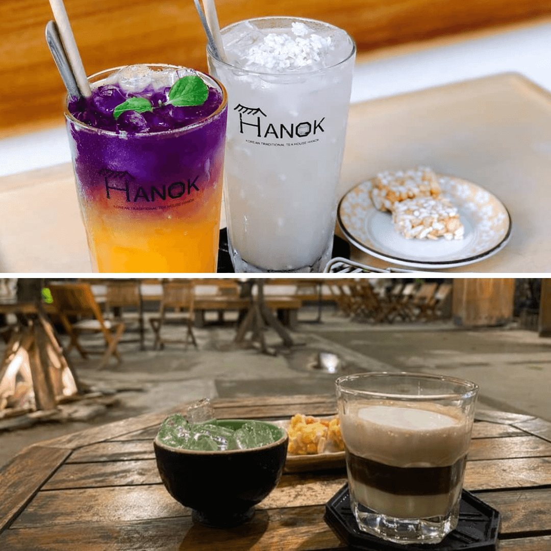 Menu đồ uống của Hanok Café rất phong phú và đa dạng,bao gồm các loại cà phê đậm đà cùng các món trà đặc trưng của Hàn Quốc. Bên cạnh những ly cà phê quen thuộc,quán còn phục vụ các món trà hoa cúc,trà ô long,trà gạo rang,và trà sữa matcha,giúp bạn cảm nhận được hương vị đặc trưng của xứ sở kim chi. Mỗi đồ uống tại quán đều được chế biến một cách tỉ mỉ,giữ được hương vị nguyên bản và có sự kết hợp tuyệt vời giữa các nguyên liệu tự nhiên. Thực đơn của quán không chỉ có trà và cà phê,mà còn có nhiều món bánh ngọt theo phong cách Hàn Quốc,rất thích hợp để nhâm nhi cùng đồ uống. Các món bánh như bánh mochi,bánh gạo,và các món tráng miệng ngọt ngào sẽ làm hài lòng những ai yêu thích các món ăn ngọt nhẹ nhàng,thanh thoát.