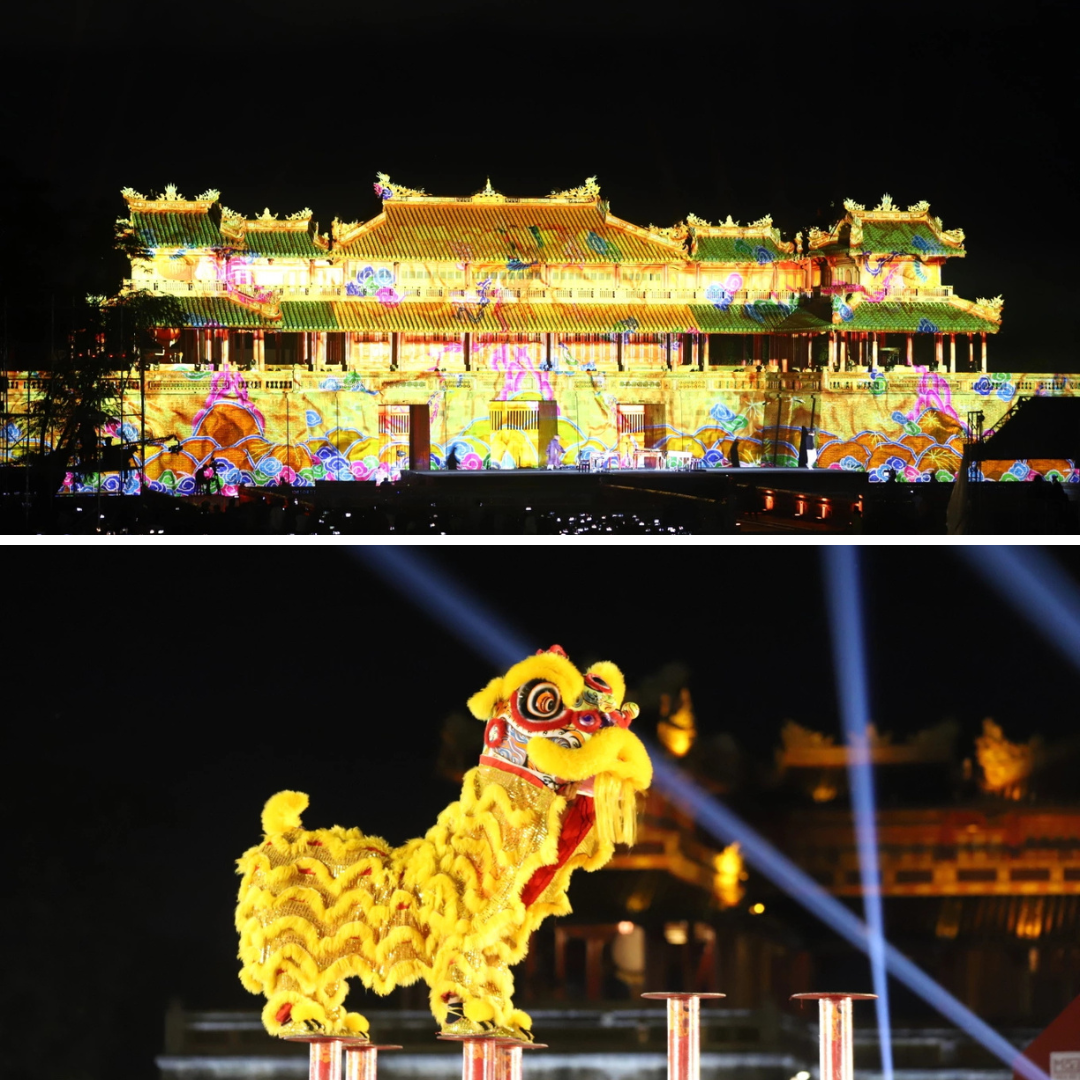 Đèn lồng là điểm nhấn không thể bỏ qua trong chương trình năm nay. Hàng trăm chiếc đèn được thiết kế theo nhiều phong cách,từ đèn mây tre của làng nghề Bao La đến đèn giấy xếp từ nghệ nhân Nhật Bản ở tỉnh Gifu. Ánh sáng dịu nhẹ từ những chiếc đèn kết hợp với khung cảnh cổ kính của Đại nội tạo nên một bức tranh lung linh,huyền ảo.