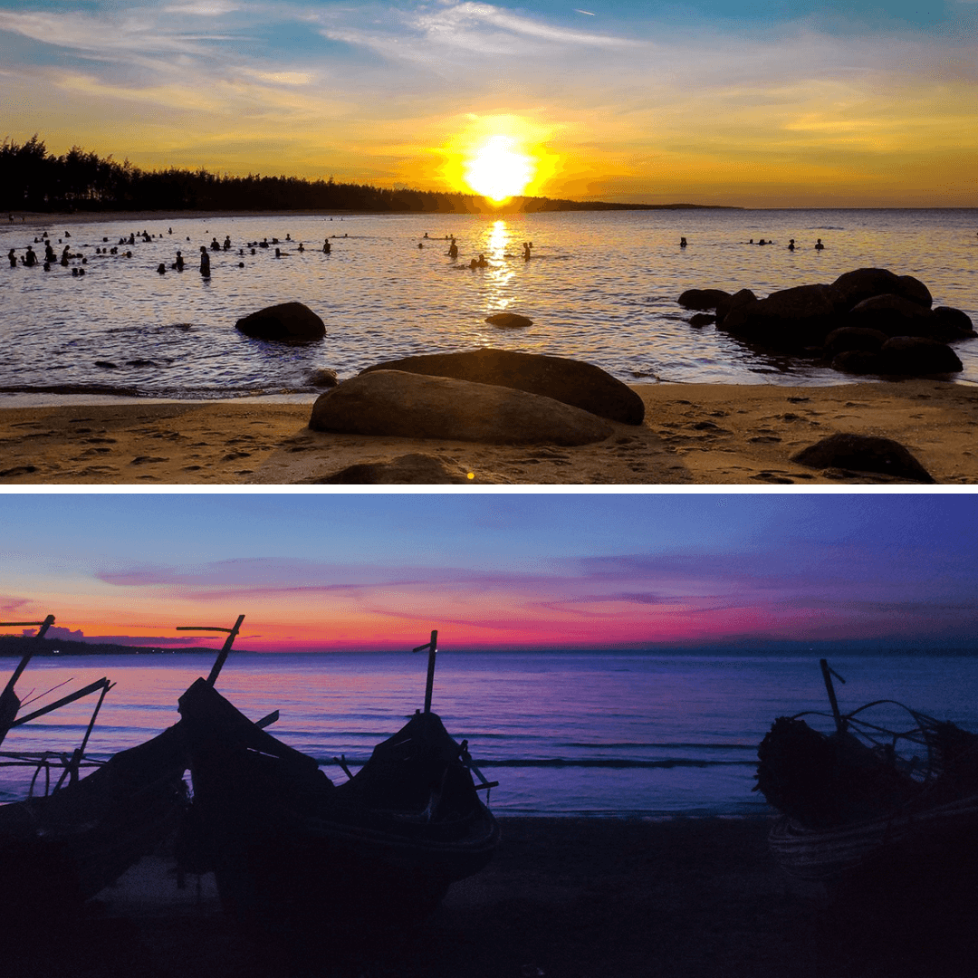 Biển Đông Dương là một trong những nơi lý tưởng để ngắm hoàng hôn ở Huế. Khi mặt trời bắt đầu lặn xuống phía chân trời,cả bầu trời và mặt biển đều nhuộm sắc vàng ấm áp,tạo nên một khung cảnh lãng mạn và tuyệt đẹp. Đây là thời gian lý tưởng để bạn ngồi thư giãn,tận hưởng không khí mát mẻ và không quên ghi lại những khoảnh khắc tuyệt vời trong chuyến đi.