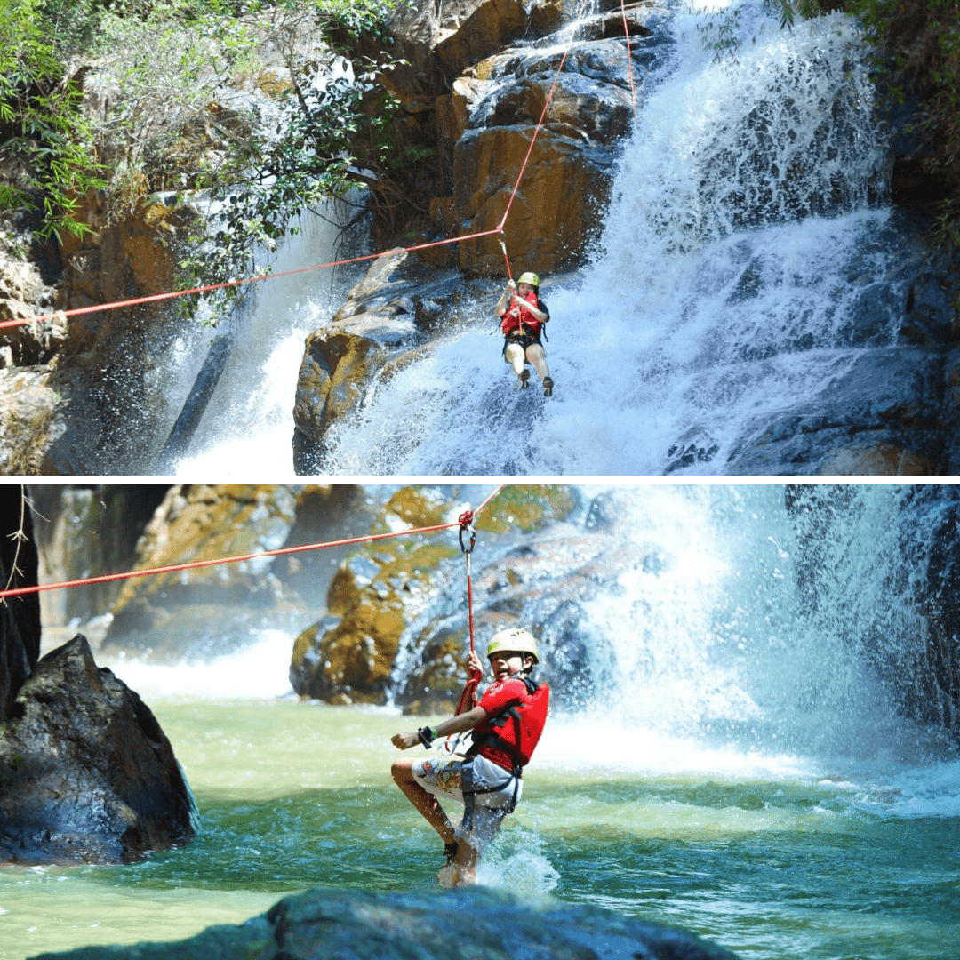 Lúc này,bạn sẽ cảm nhận được cảm giác mạnh khi đu dây và nhìn xuống dưới là thác Đỗ Quyên ầm ầm chảy,nước bắn lên tạo thành những đám sương mù mát lạnh. Khung cảnh xung quanh vô cùng hùng vĩ,với dòng suối trong vắt và cây cối xanh mướt tạo thành một bức tranh thiên nhiên tuyệt đẹp. Cảm giác được bay lượn giữa không trung,vượt qua dòng thác như một thử thách thật sự khiến bạn không thể quên. Đây là một cơ hội để thử thách bản thân và tận hưởng cảm giác tự do,khám phá vẻ đẹp của thiên nhiên từ một góc nhìn hoàn toàn mới.