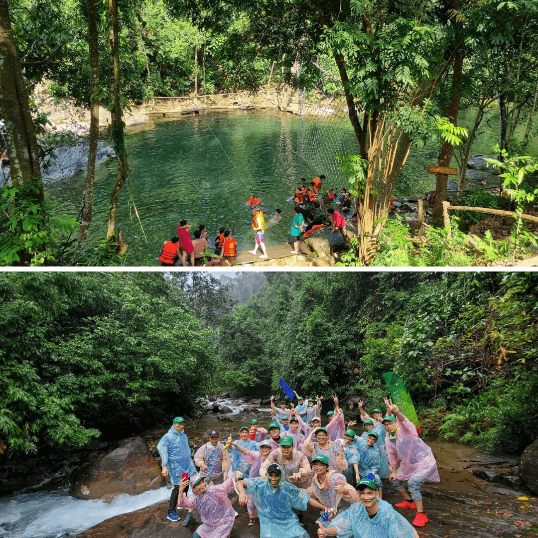 Bên cạnh đó,khu team building có cầu phao,zipline và trò bóng rổ treo trên cao đầy mới lạ. Mình cùng đồng đội thử zipline,cảm giác vút qua không gian xanh khiến ai cũng hò reo sung sướng. Mỗi trò chơi đều có hướng dẫn viên chuyên nghiệp,đảm bảo an toàn. Đây là dịp tuyệt vời để gắn kết bạn bè,rèn luyện thể lực và xả stress.