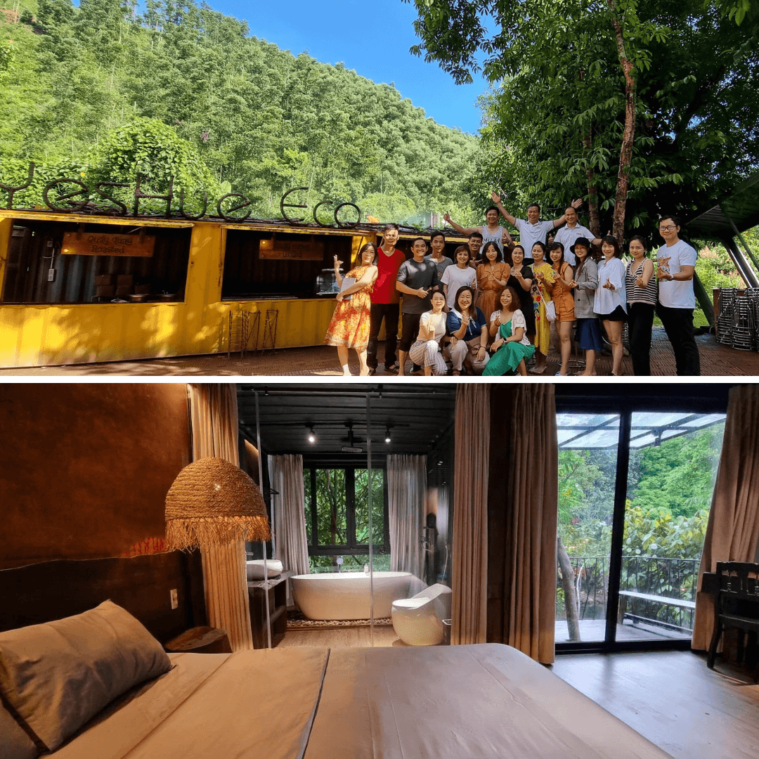 YesHue Eco có bungalow gỗ,phòng dorm tập thể và lều trại cho những ai muốn hòa mình cùng thiên nhiên. Mình đã thử ngủ bungalow sát suối,thức dậy cùng tiếng nước reo rì rào giữa đêm. Phòng dorm rộng rãi,có giường tầng,đèn đọc sách và ổ cắm điện ở mỗi giường. Lều trại được trang bị túi ngủ,đèn pin và thảm chống ẩm,rất tiện lợi.