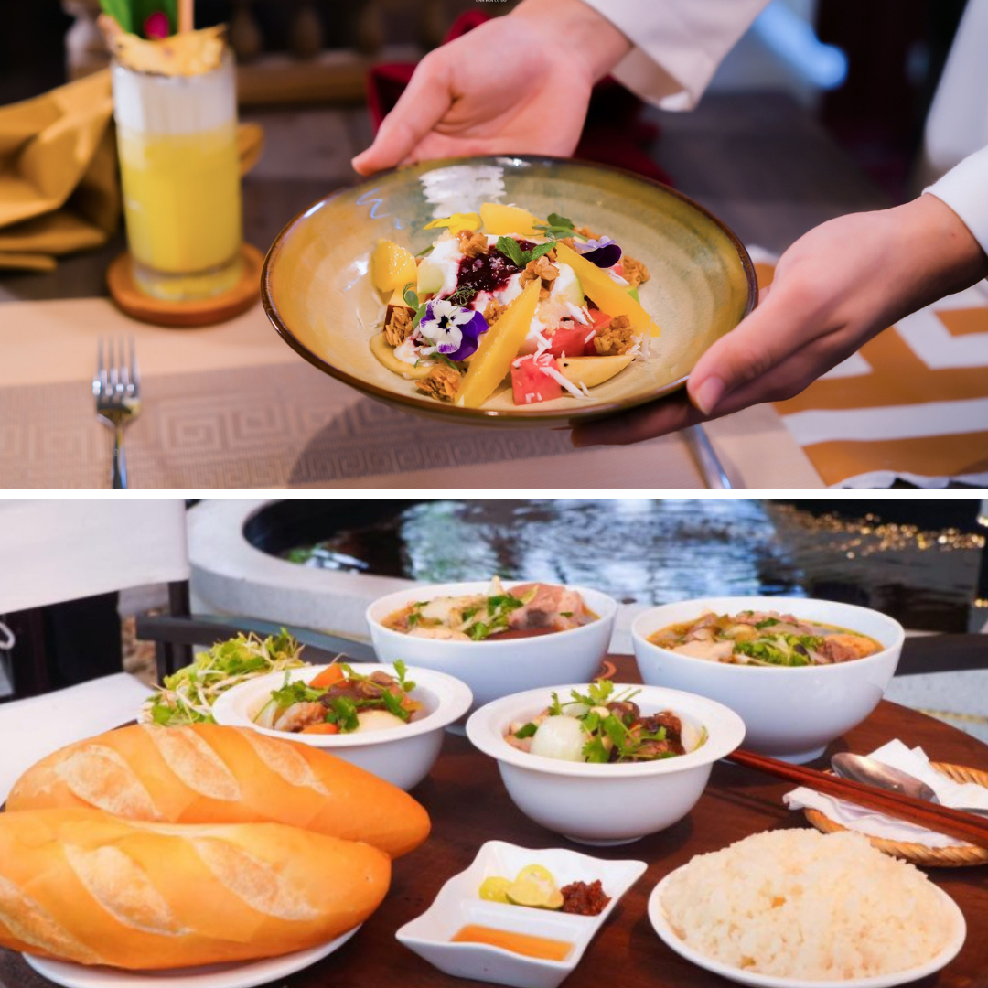 Một điểm nổi bật khác khiến mình ấn tượng là sự đa dạng của thực đơn,từ các món Huế truyền thống như bún bò,nem lụi,cơm hến cho đến các món chế biến mới lạ với phong cách fusion. Nhà hàng còn đặc biệt chú trọng đến việc cân bằng dinh dưỡng và thẩm mỹ trong mỗi món ăn. Điều này giúp thực khách vừa thưởng thức được hương vị đặc sắc vừa có trải nghiệm ăn uống lành mạnh. Mình tin bạn cũng sẽ dễ dàng tìm thấy món ăn phù hợp với sở thích khi đến đây.