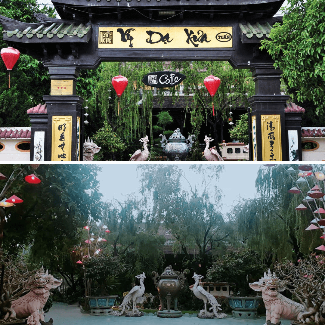 Khi bước vào Vỹ Dạ Xưa,mình như được đưa về một không gian thời gian khác,đầy yên bình và mộc mạc. Cổng rường gỗ được chạm khắc tỉ mỉ kết hợp với những chiếc đèn lồng đỏ tạo nên một nét kiến trúc truyền thống đặc trưng. Khu vườn xanh mát với những tiểu cảnh nhỏ xinh như hồ nước,cầu gỗ uốn lượn mang lại cảm giác thư thái. Mình rất thích cảm giác ngồi bên ly trà trong khung cảnh ấy,cảm nhận từng khoảnh khắc tĩnh lặng giữa lòng thành phố.