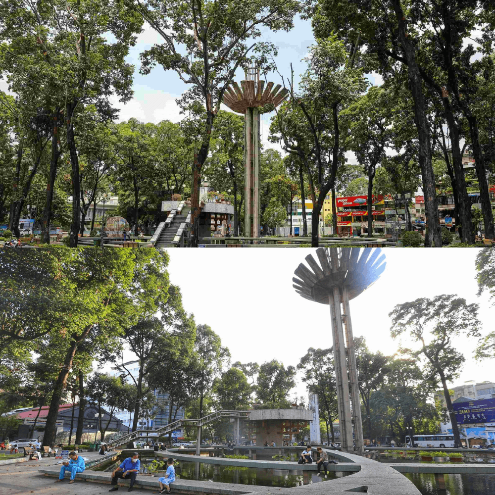 Hồ Con Rùa sở hữu khng gian rộng rãi,thoáng đãng với hàng cây xanh mát bao quanh,tạo nên một khung cảnh yên bình giữa lòng thành phố nhộn nhịp. Đây là điểm hẹn lý tưởng cho các cặp đôi trẻ,nhóm bạn muốn tìm nơi thư giãn,tán gẫu. Hồ Con Rùa là một trong những địa điểm chụp hình tuyệt đẹp ở Sài Gòn mà bạn nhất định không thể bỏ qua. Với nhiều góc check-in sang chảnh,đặc biệt là khu vực trung tâm hồ được thiết kế độc đáo với cầu thang lên xuống và lối đi lạ mắt,nơi đây sẽ mang đến cho bạn những bức ảnh lung linh,ấn tượng. Khi màn đêm buông xuống,Hồ Con Rùa trở nên rực rỡ dưới ánh đèn,tạo nên một khung cảnh huyền ảo như bức tranh sống động. Ánh sáng dịu nhẹ tôn lên nét đẹp của nghệ thuật kiến trúc,biến hồ thành một điểm nhấn quyến rũ trong đêm. Vào dịp cuối tuần hay các ngày lễ,những màn trình diễn phun nước tuyệt đẹp và ấn tượng tại hồ sẽ là trải nghiệm mà bạn không nên bỏ lỡ.