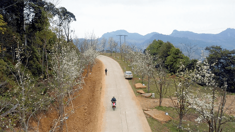 Tuyến đường hoa lê dài nhất Việt Nam tại xã Hồng Thái,huyện Na Hang đang vào mùa nở rộ ( Ảnh: Sưu tầm)