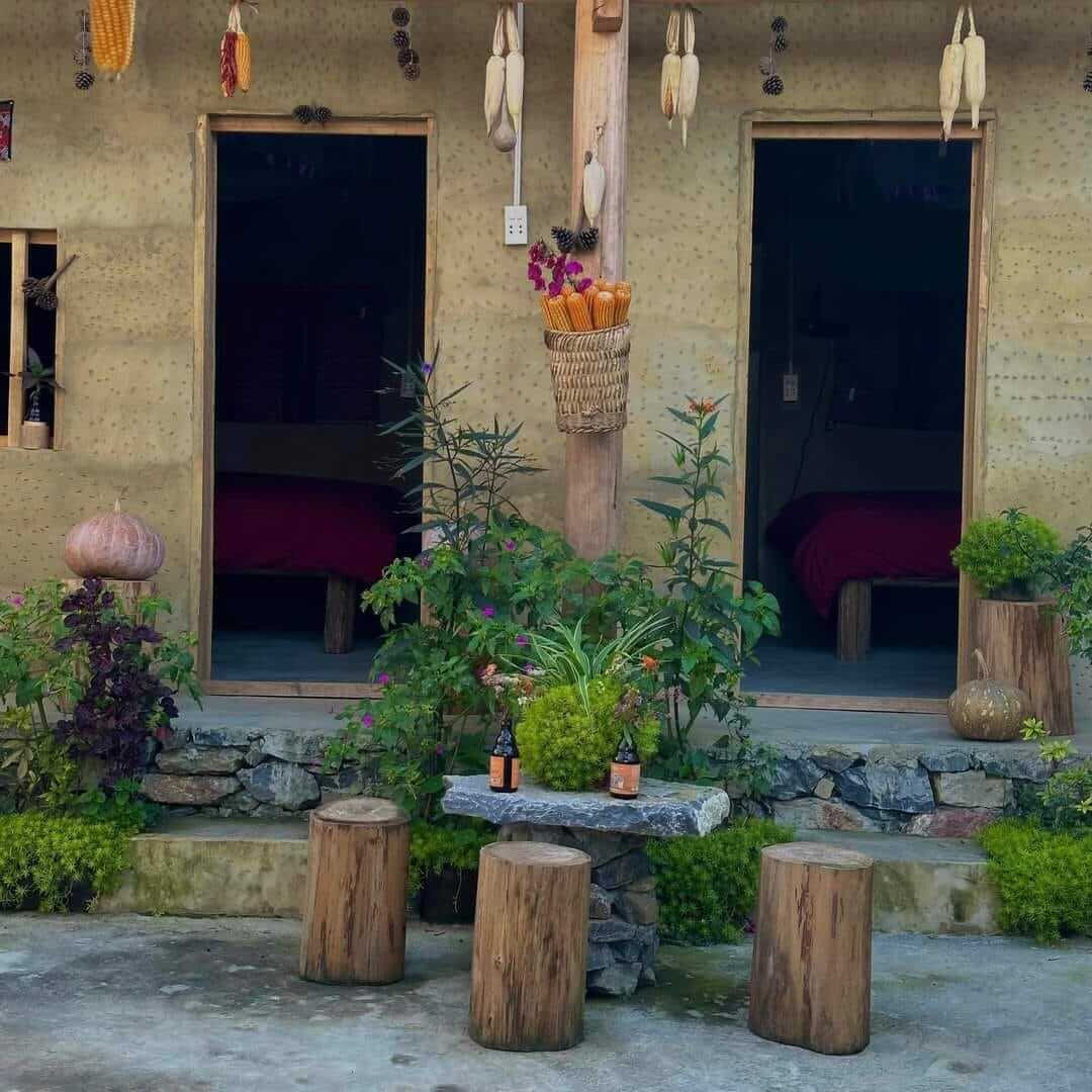 Tại thôn,các căn nhà vẫn giữ nguyên kiến trúc của người Lô Lô,với nhà trình tường đất kín 3 mặt,cổng và tường rào bằng đá xếp thủ công. Để phù hợp làm du lịch,các hộ dân đã sửa sang,làm thêm vệ sinh khép kín,tiện cho du khách đến ăn nghỉ,sinh hoạt,nhưng không làm ảnh hưởng đến kiến trúc bên ngoài và tổng thể.