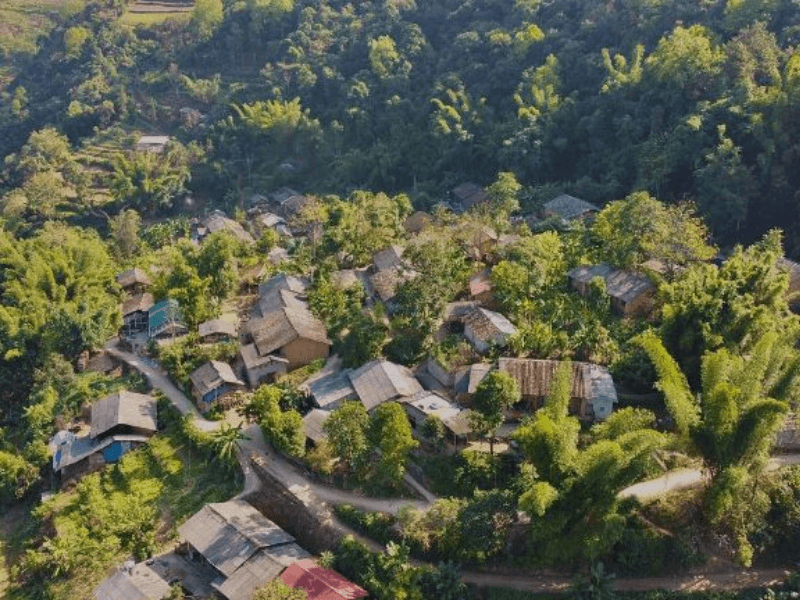 Toàn cảnh Làng Văn hóa du lịch cộng đồng Nặm Đăm nhìn từ trên cao
