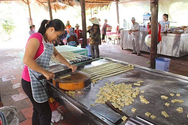 Ben Tre is renowned for its abundance of coconuts and the various products that are made from this versatile fruit. Among these products,coconut candy stands out as the most famous. As such,a visit to a coconut candy factory is an essential part of the Con Phung. The path leading to the factory on Phung Islet is lined with tall coconut trees,providing a cool and shady walk. Upon entering the factory,visitors are greeted with the sight of local workers diligently making candy. The love and dedication of these candy makers is evident in every step of the process,from mixing and cooking to cutting and packaging. Bringing home a few bags of this delicious coconut candy for your children is sure to be a hit with them.